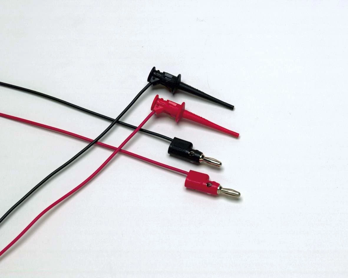 - 1 paire de cordons de mesure (rouge, noir) avec fiches bananes 4 mm empilables et mini-crampons