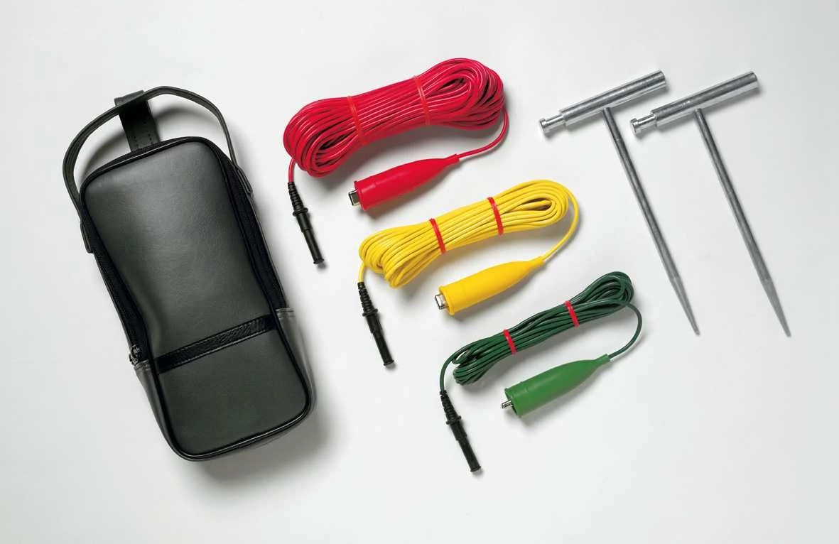 - Le kit permet de tester facilement la résistance de la terre en utilisant 3 fils et des broches de terre auxiliaires.