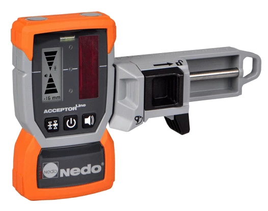 Nedo ACCEPTOR Récepteur laser de ligne avec affichage en mm et fixation rapide du bâton